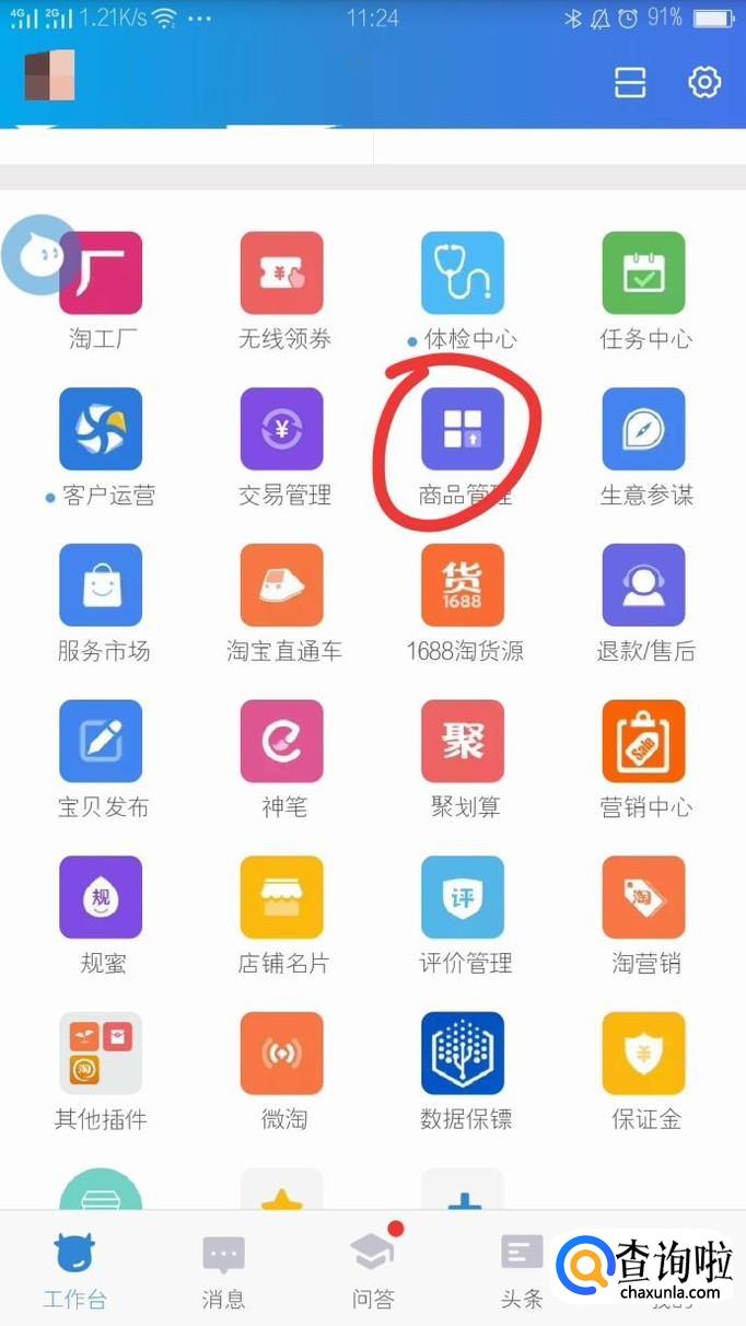 在千牛首页面中找到“商品管理”,点击进入下一个操作。