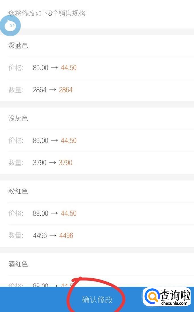 如下图所示内容,在红色标注内容添加修改的价格,然后点击修改。
