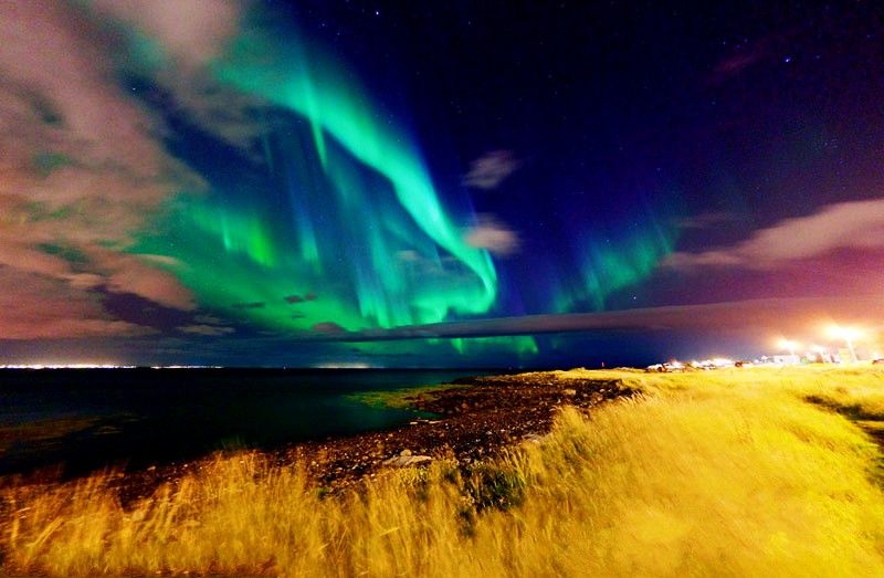 当然,根据各种形成条件的限制,极光的颜色也是有偏好的。最常见的极光是绿色的,其次是粉色(少量绿色+红色)、纯红色和黄色(红色+绿色),最罕见的是纯蓝色。但是对于生活在低纬度的居民来说,在太阳活动强烈的时候,低海拔产生的红色极光会更为常见一些。