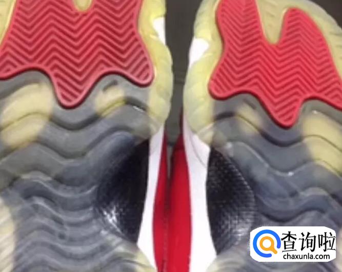 所有AJ复刻系列中,AJ5,AJ6,AJ11这三兄弟是最喜欢用水晶底的,但在水晶底的运用上面也略有区别,AJ5的人字纹全是水晶的透明橡胶,可以在纹路中看到中底的Jumpman的Logo;而AJ11是用水晶把人字纹的橡胶纹路包起来,水晶底的透明更多是想露出那块硕大的碳板;AJ6则是将水晶底分成区块和橡胶一起组成大底。
