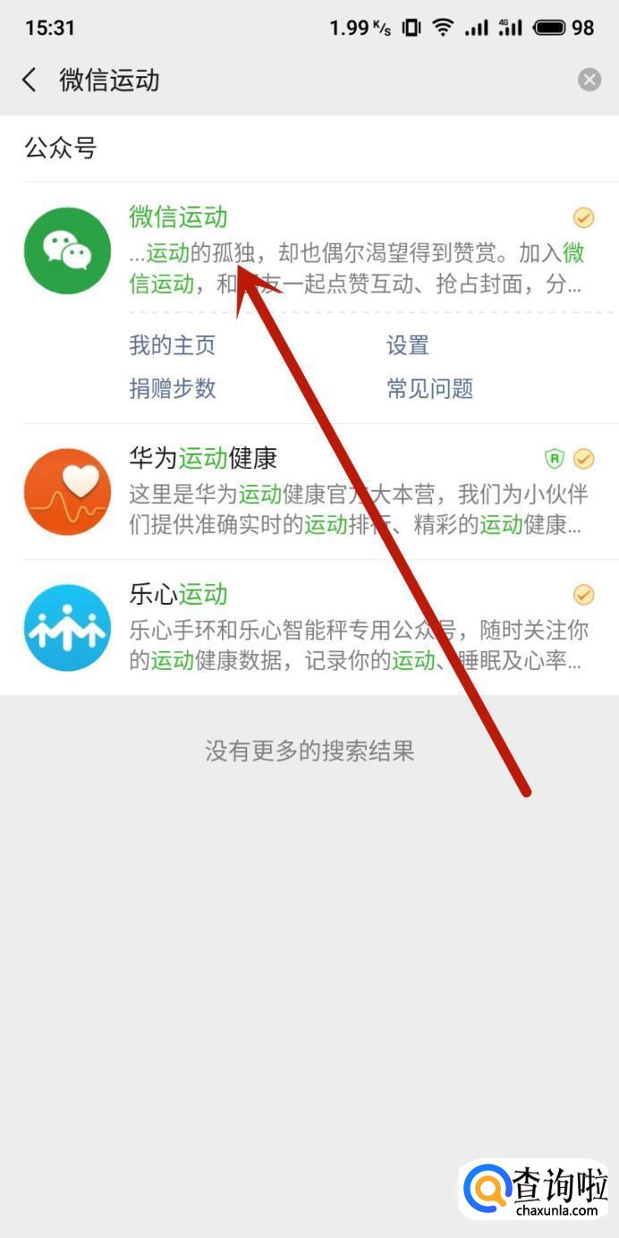 进入之后,搜索“微信运动”,点击并进入,如图所示。