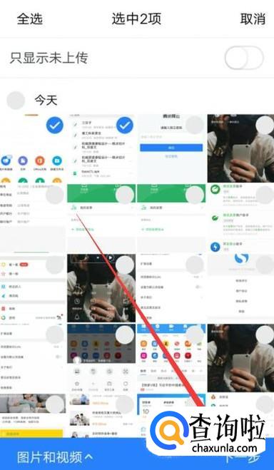 进入之后,勾选想要上传的图片,点击“下一步”,如图所示。