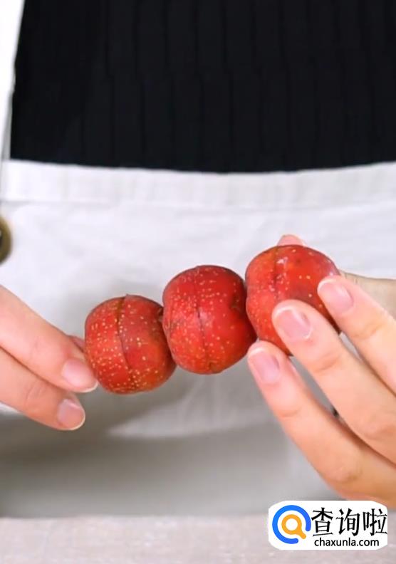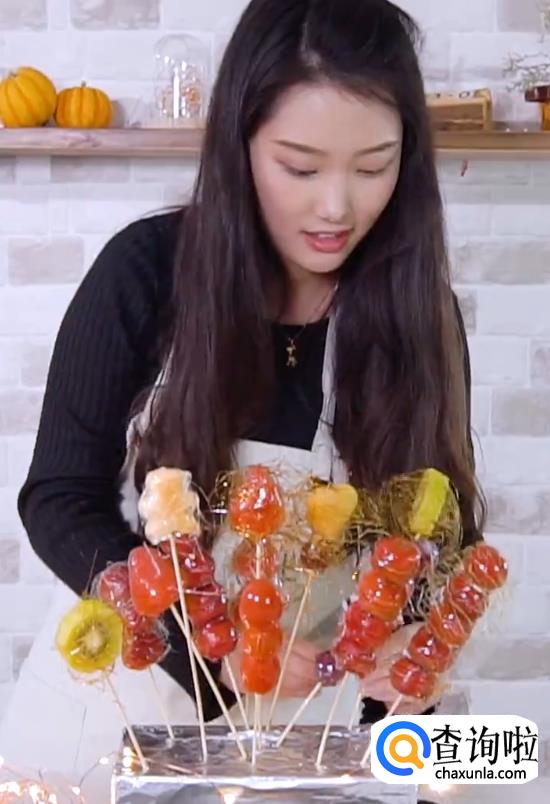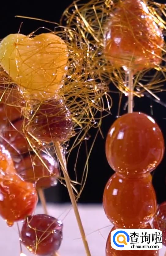 可以用勺子挖一点糖丝,迅速缠在冰糖葫芦上即可!等糖浆凝固了,就可以插起来或者食用了,这就是拉丝糖葫芦。