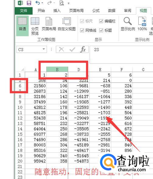 操作成功后,便冻结在这个位置,冻结位置的左右、上下移动都不会改变,如下图: