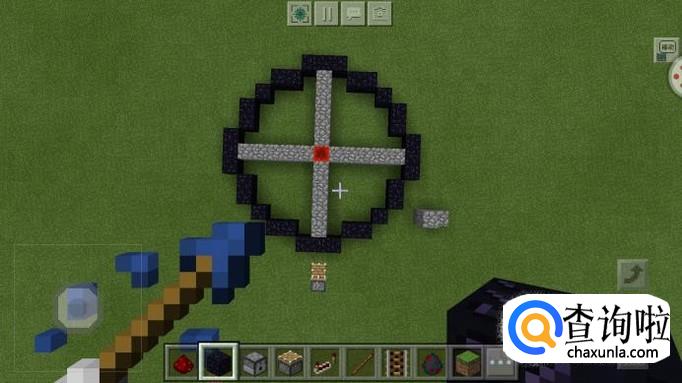 然后我们需要确定这个圆的顶点,这里我用黑曜石方块做顶点。