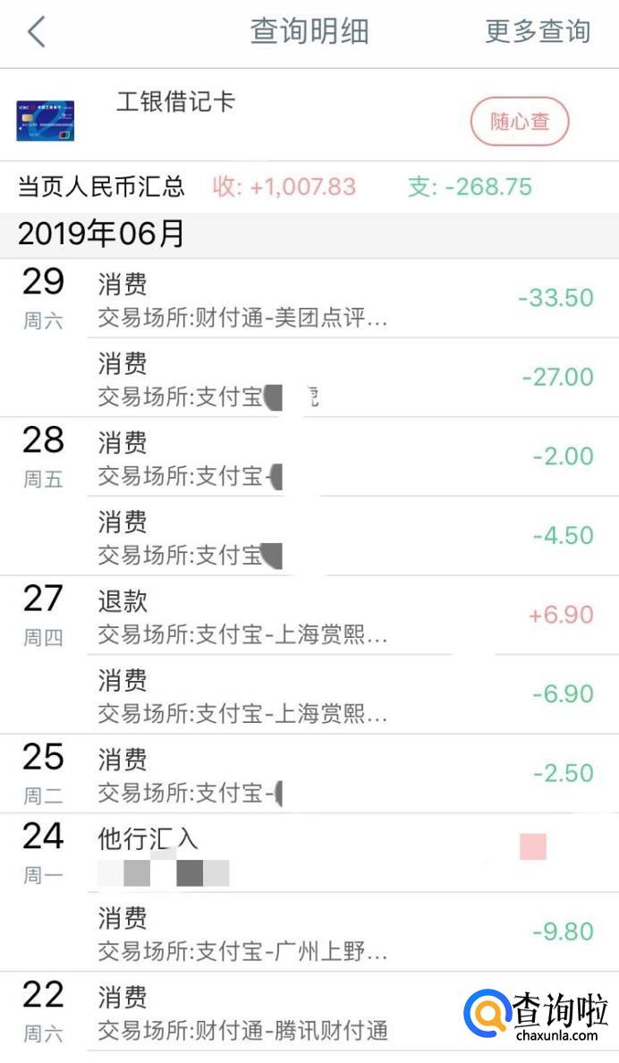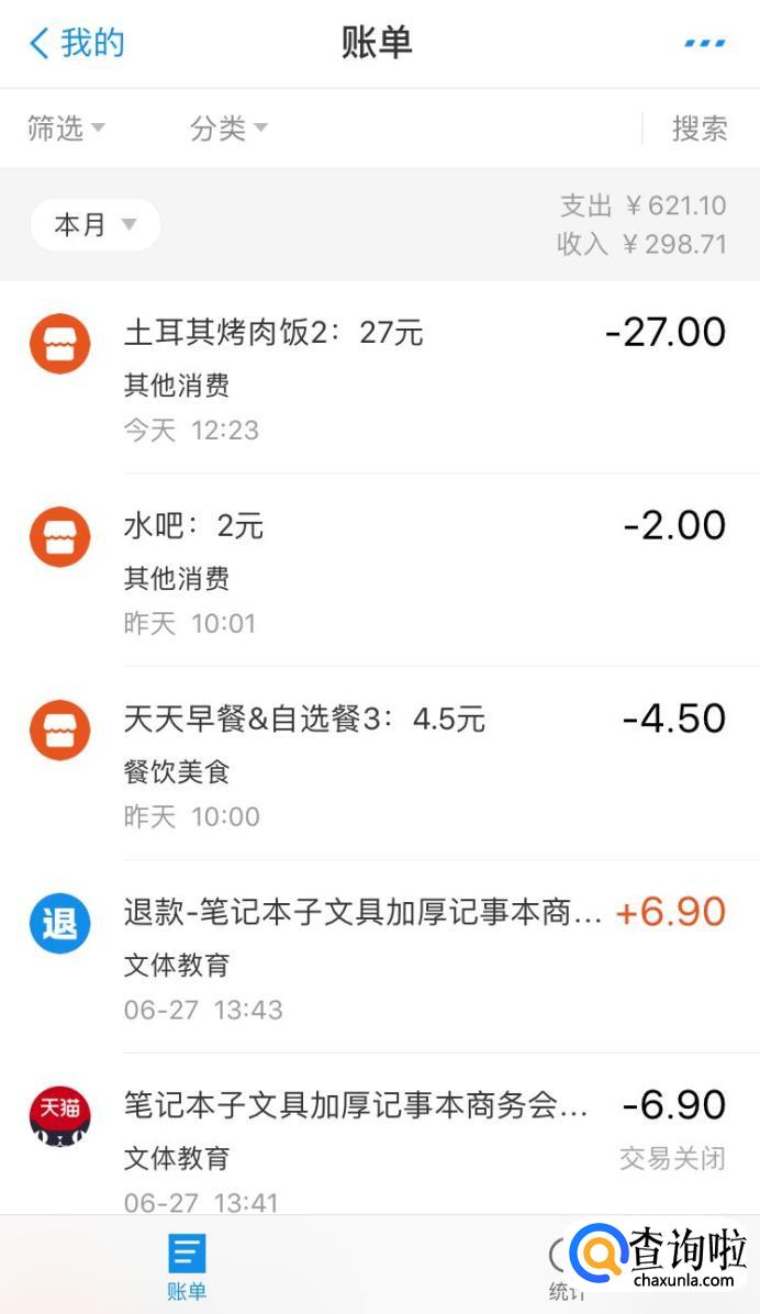 凡是通过银行卡消费的消费记录都会显示在这个页面上。