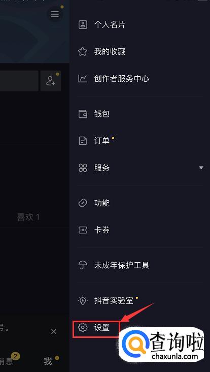 接着,页面右侧会弹出一个菜单栏,找到【设置】,点击进入。