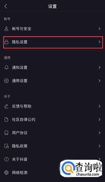 进入设置页面后,在“账号”一栏下找到并点击【隐私设置】。