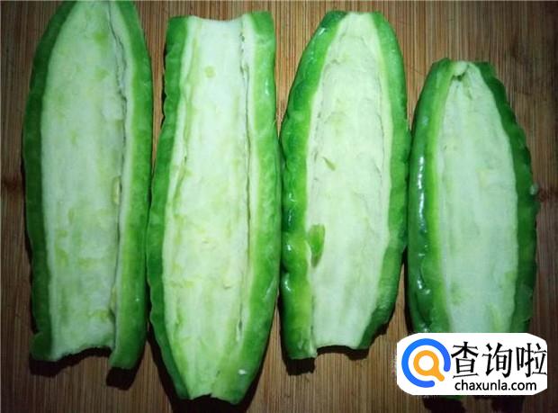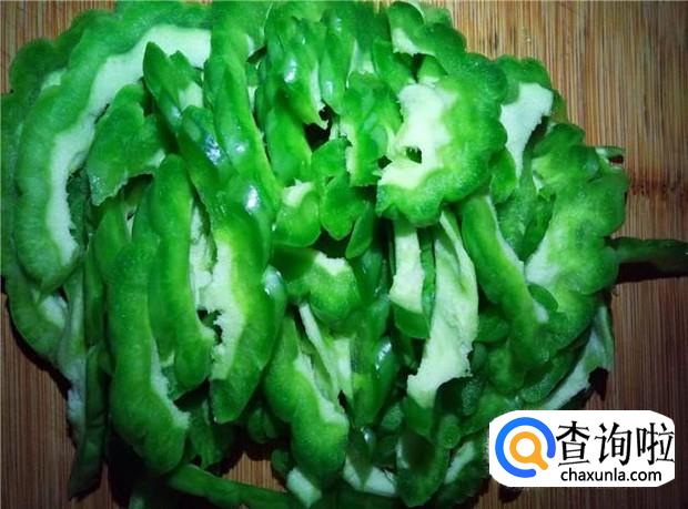 横刀切成薄片,然后放水里清洗一遍,加入适量的盐泡一会。这样苦瓜就没有那么苦了。