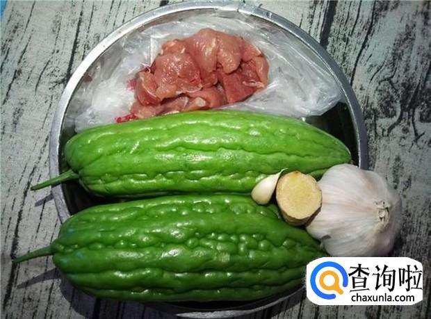苦瓜、瘦肉、姜、蒜、花生油、酱油、盐