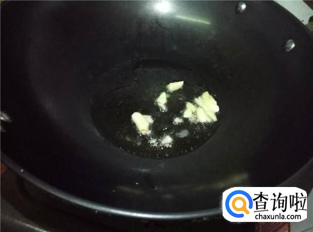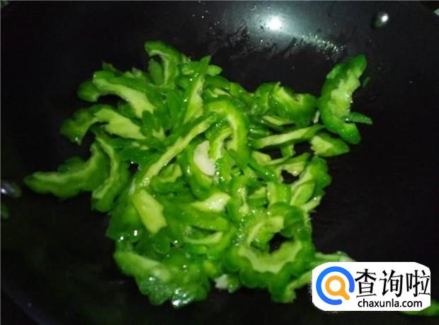 热锅下油,放入蒜头煸香,然后倒入苦瓜,翻炒。