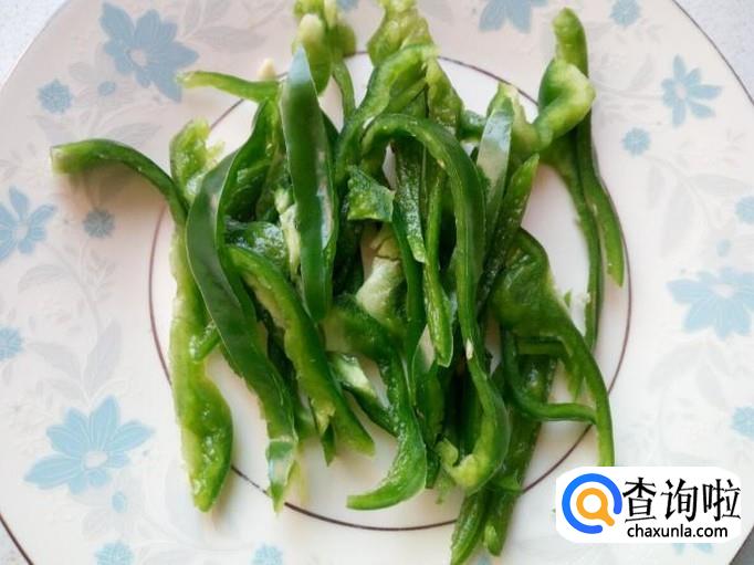 青椒用水清洗干净,控干水分,切成丝。切好葱,姜,备用。