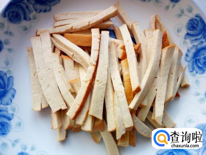 素鸡用水冲洗一下,控干水分,切成细条。