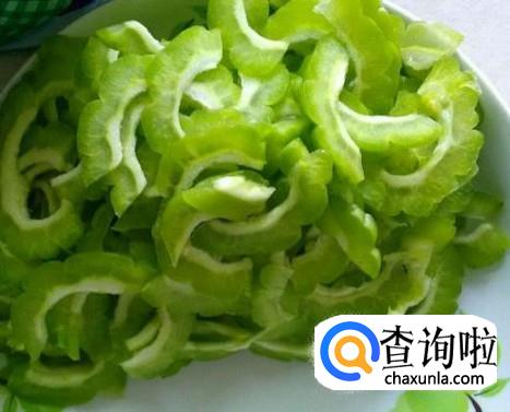 将苦瓜剖开,去掉中间的瓤,切成均匀的薄片,葱切成丝。