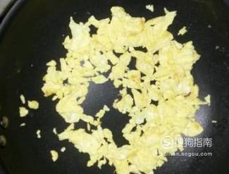 锅中放入食用油,油热后,将鸡蛋搅拌成蛋液,倒入锅中,搅成碎块铲出待用。