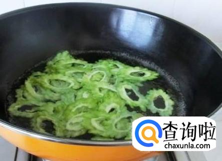 先在锅中放入清水,水开后,将苦瓜放入开水中,焯一下,捞出备用。