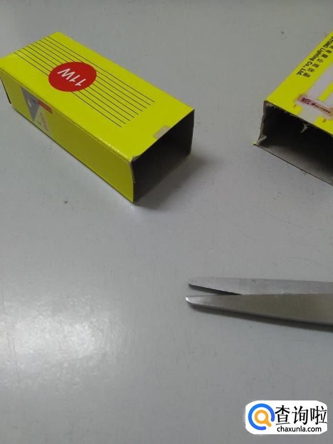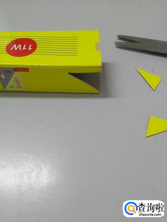 用剪刀将纸盒开口处的两侧各剪掉一个小三角。