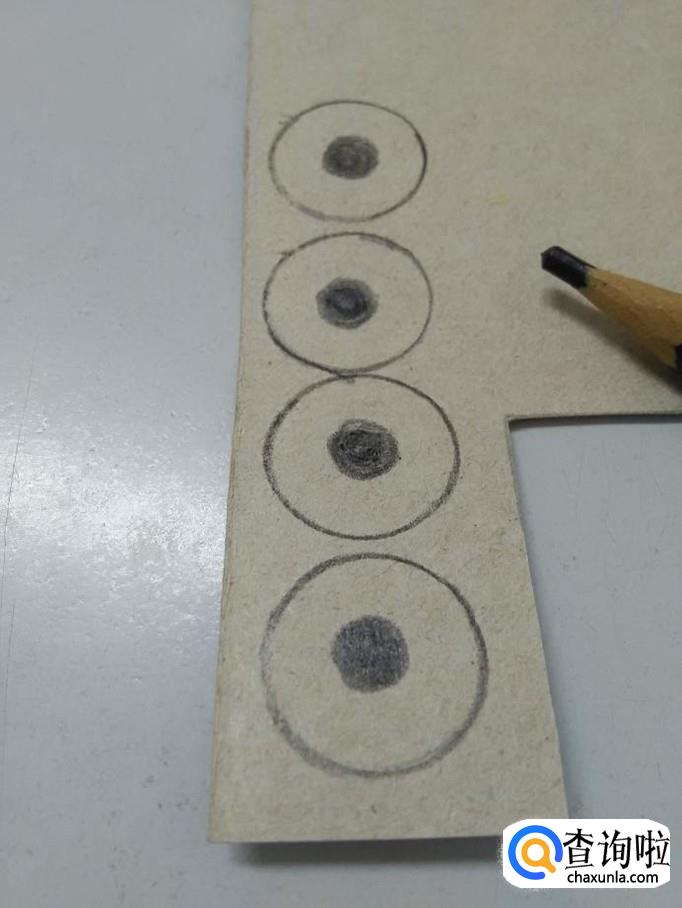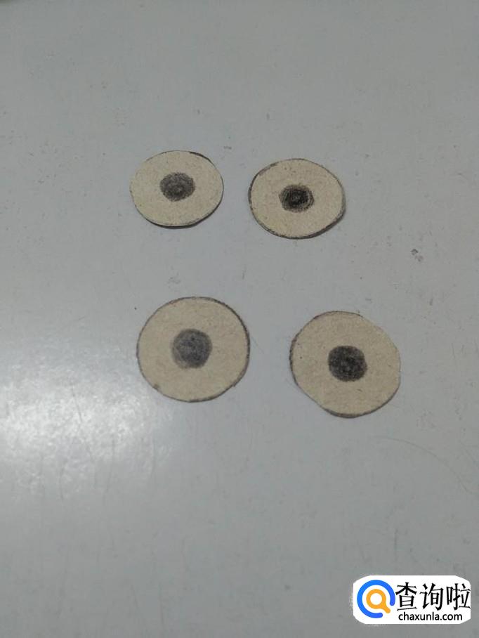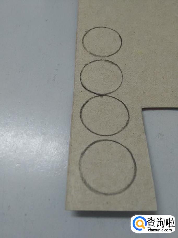用黑色彩笔在纸盒背面画四个一样大的圆形。