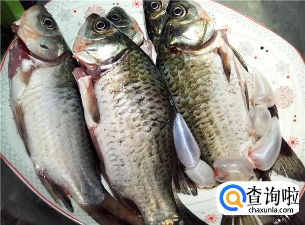 鲫鱼刮掉鱼鳞,清洗干净鱼肚子里面的脏东西。