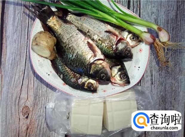 鲫鱼、嫩豆腐、葱、姜、花生油、盐、料酒