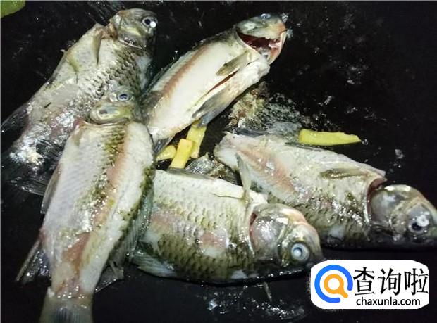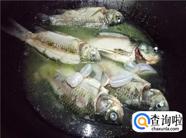锅里放入少许油,先把鲫鱼放下去,小火煎到两面变硬。