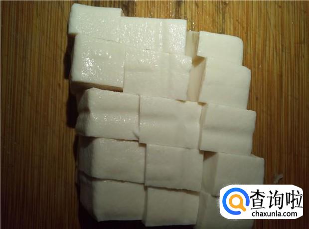 然后加入两碗清水,再把豆腐一起倒在汤里面,加入少许盐。