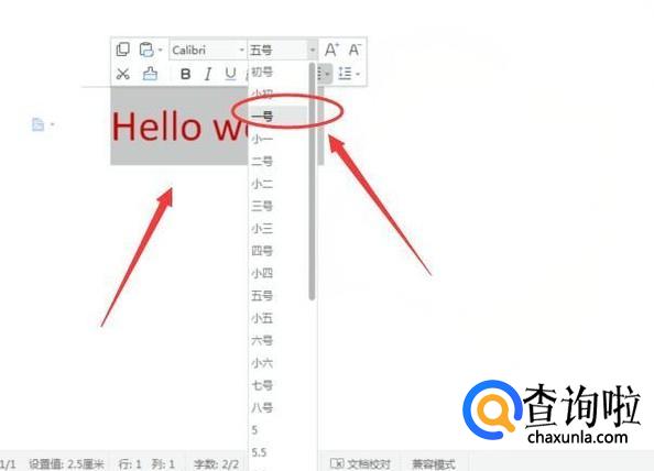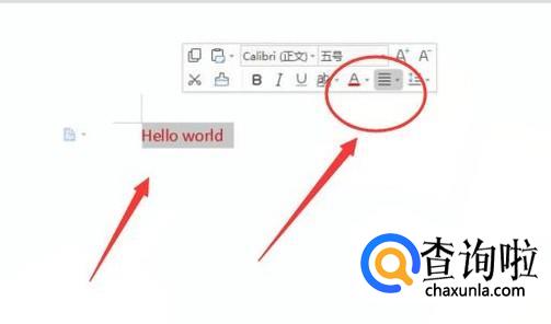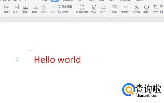 然后在空白文档中输入文字,比如hello world ,如下图所示: