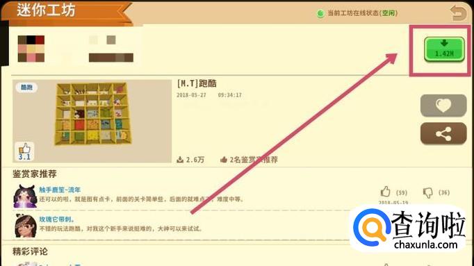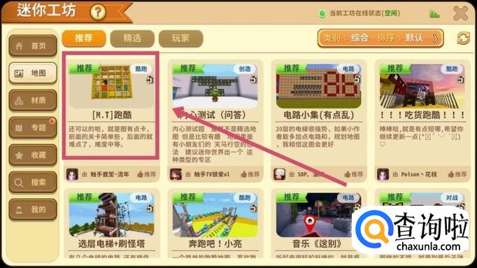 打开游戏后,在界面的右上角可以找到“迷你工坊”,里面有大量的地图可供我们下载使用。