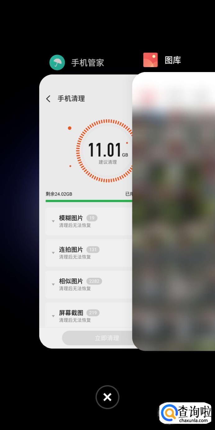 另外可以上滑打开多任务栏窗口点击中间的那个叉清理多余的运行缓存垃圾