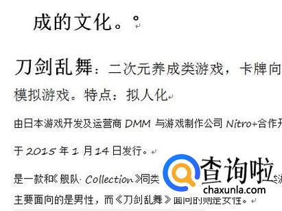 回到文档界面,找到想要添加成小标题的文字,比如将刀剑乱舞设置成小标题,选中刀剑乱舞,然后在右上方的标题栏里找到刚刚设置好的标题格式,点击标题1,然后你就会发现刀剑乱舞设置成了你想要的小标题,这样标题就添加好啦。