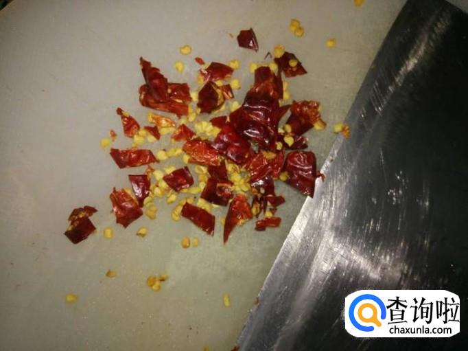 取10个左右干红辣椒,稍微清洗一下,再切碎;喜好辣一点的还可以多切一点,让皮蛋变得辣爽辣爽的;