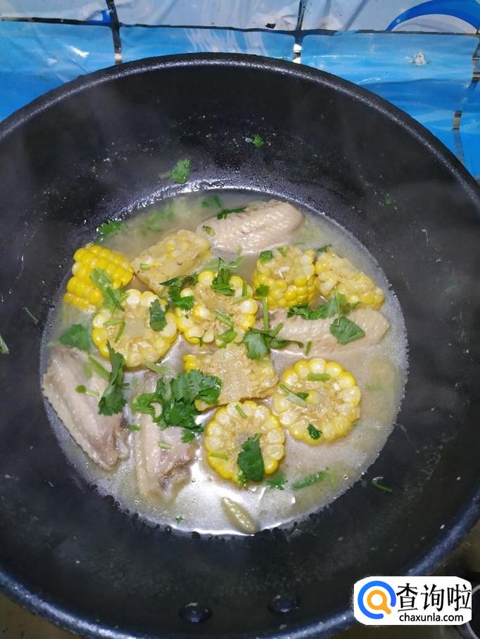 玉米适量,鸡翅适量,香菜适量,生抽适量,盐适量,姜适量。