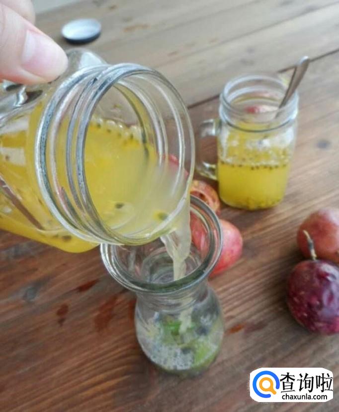 可以在家榨个百香果汁。选新鲜的百香果4-5个洗净,用到从中间切开,用勺子挖出百香果果肉,放进榨汁机,启动榨汁开关开始榨汁,榨好后倒入杯中加入适量蜂蜜。