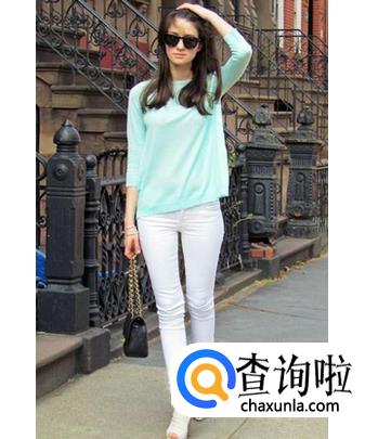浅绿色——浅绿色的上衣与白色裤子搭配,给人一种清爽的感觉。
