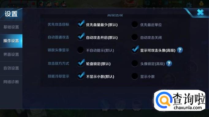 王者荣耀 操作设置 显示可以或正在攻击的英雄