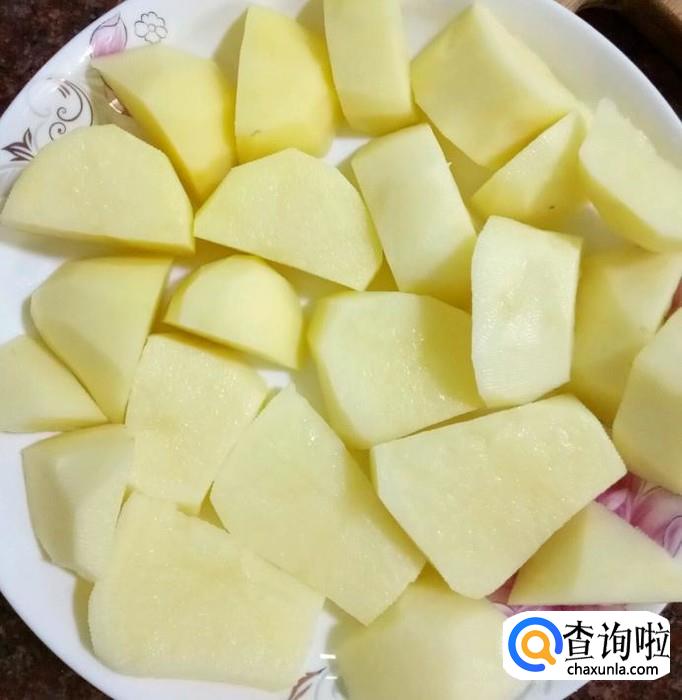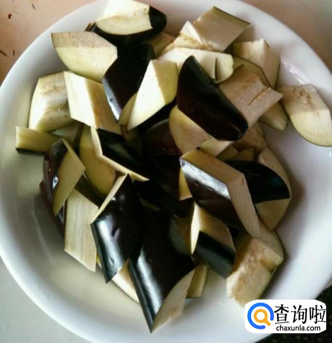 先把土豆去皮后切成大块,茄子和辣椒也同样切成块状。(辣椒一个就够用了)