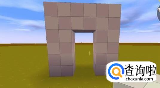 首先,做一个2个格子高的门框。门框呈现倒凹型,要封顶,不能太高了。