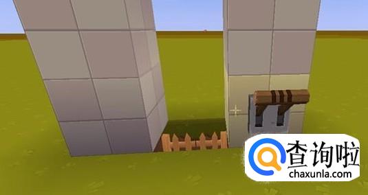 接下来,在旁边的门框上安装一个开关。原理:栅栏高度一个格,但是用了两个格子,相当于在栅栏上方放了个空气块。通电时,栅栏就会打开。