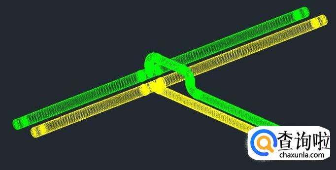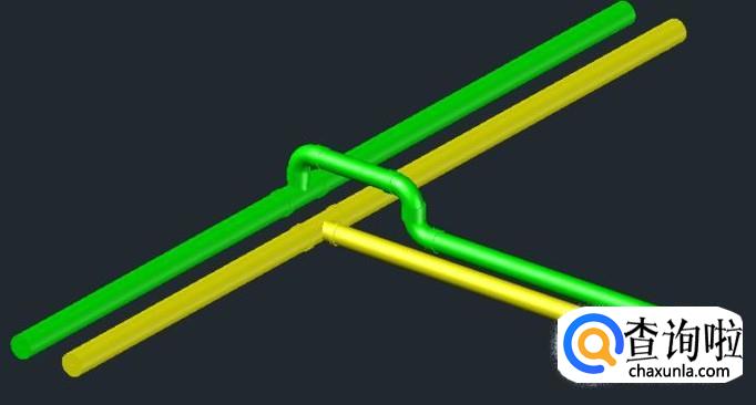 在命令行输入“3DO”,进入“受约束的动态观察模式”,可以直观的看到自己绘制好的管线,如下图所示