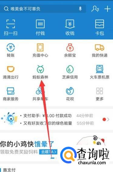 进入之后,点击“蚂蚁森林”,进入下一页面,如图所示。