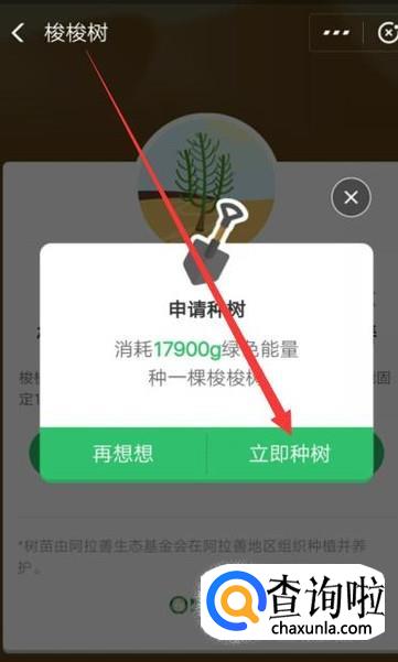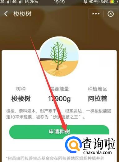 进入之后,点击“申请种树”,进入下一页面,如图所示。