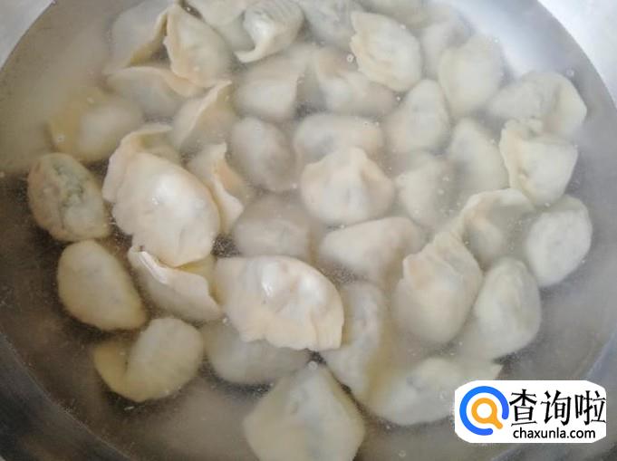 煮锅放水烧开,如图下入包好的水饺,下饺子水量一定要足,水少的话容易把饺子煮破皮,饺子开锅后,加入三分之一舀子凉水,盖上锅盖,再次开再加水,肉馅饺子加三次水,素馅加一次就可以,查看煮熟就好。