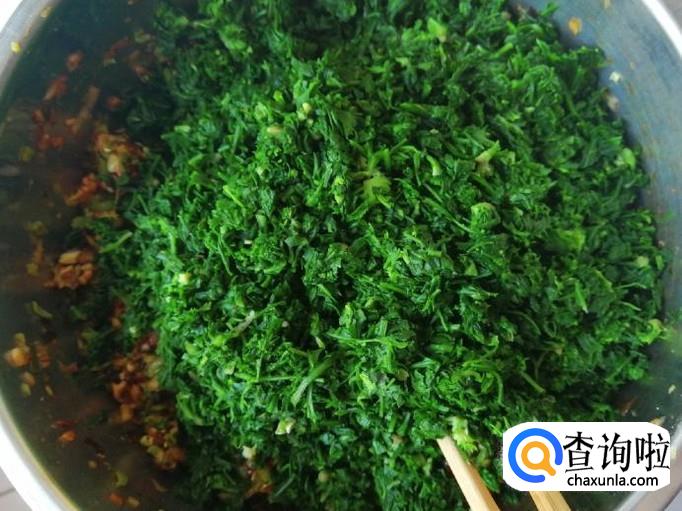 最后加入香油还有备好的木耳末,搅拌均匀,荠菜是准备包的时候放进去就可以了。