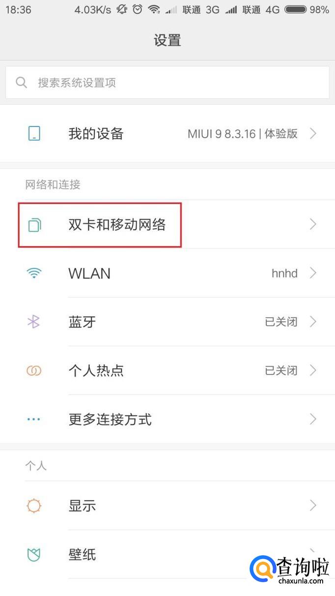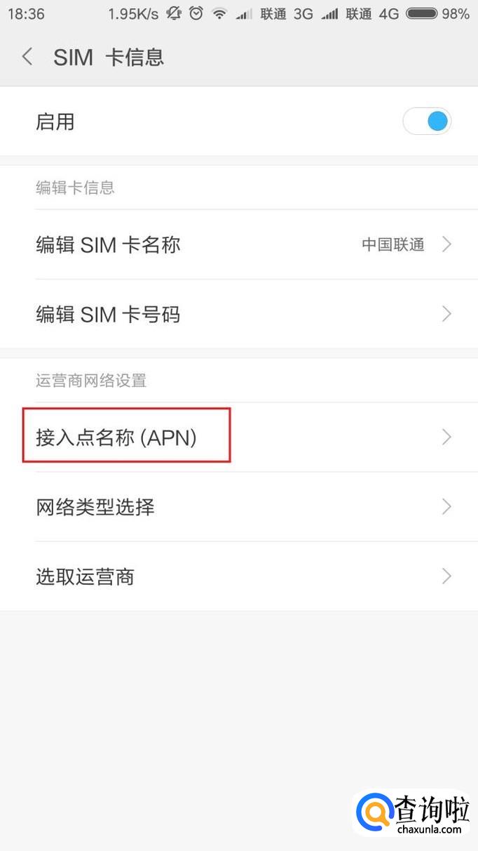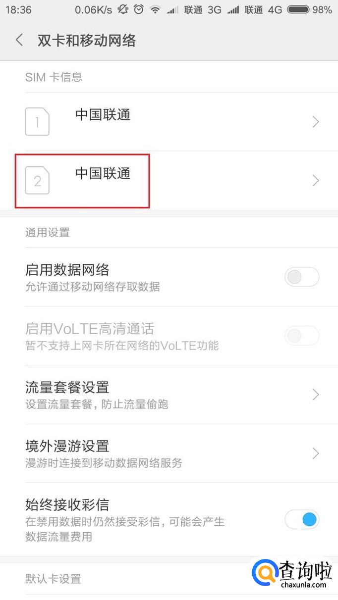 选择数据上网时使用的那张SIM卡,点击进入网络设置页面。