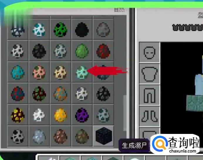 打开背包,在背包中找到生物蛋,找到可以生成溺尸的生物蛋。