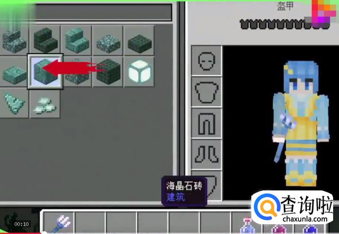 在背包中选取好需要激活的材料,海晶石桥、海晶石砖、暗海晶石、海晶灯等。