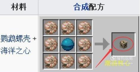 潮涌之心由八个鹦鹉螺壳和一个海洋之心合成,合成完后呈现的是一种多方块结构。