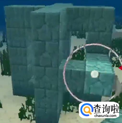 用海晶石砖搭建好第一层围墙框后,将潮涌之心放置在上面。