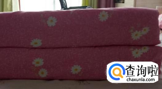 再沿着这条隆起的条把被子叠起来,形状就像豆腐块。