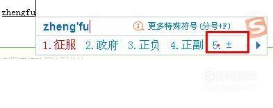 直接输入拼音zhengfu,也可以打出±号。